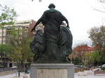 Estatua que ocupaba el nicho del edificio hasta 1920 y que actualmente se encuentra en la plaza del Campillo del Mundo Nuevo. Inscripción en la base: