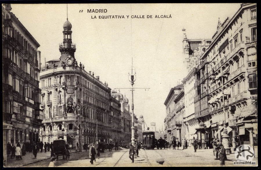 Anterior a 1920. El edificio más llamativo en esta imagen es el antiguo palacio de “La Equitativa”, en la esquina de la calle Alcalá con Sevilla, pero si nos fijamos a la izquierda de la postal podemos ver el edificio que había antes de