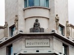 terminado hace algunos años, se nuevo a medio camino entre la Cibeles y la Puerta de Alcalá, en el actual número 63 de Alcalá, encontramos ahora el edificio ya en construcción que sería la sede de la empresa de seguros “La Equitativa-Fundación Rosillo”, cubierto de carteles publicitarios.
