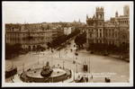 que tuvo este aspecto hasta 1926. A la derecha de la imagen, al lado de la calle de Alcalá, vemos un trozo de los antiguos jardines del Buen Retiro, donde se empezaría a levantar en 1904 el Palacio de Comunicaciones. A medio camino entre la Cibeles y la Puerta de Alcalá, en la esquina con la calle Pedro Muñoz Seca, encontramos el edificio que sería derribado para construir la sede
