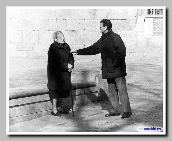 Dos vecinos charlan sobre asuntos de su comunidad en Puerta de Moros.