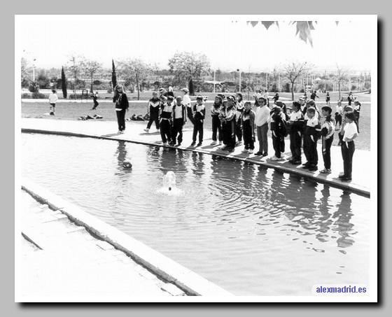 look at their ball which fell into this fountain at Juan Carlos I park.