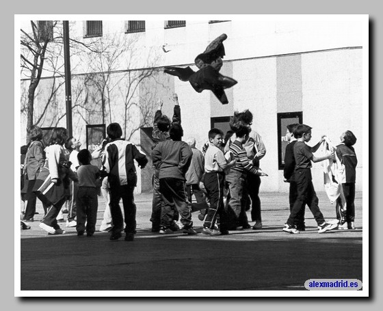 These kids have fun spitting and throwing their coats over the venting pipes from an underground car park at Goya street.