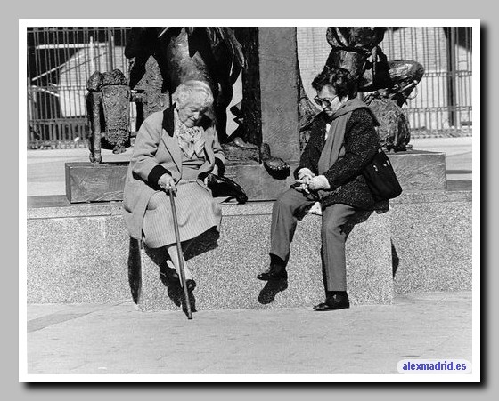 Dos viejas hablan de los problemas en sus piernas en la Plaza de Las Ventas.