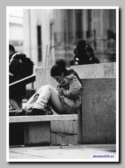 Esta chica estaba tan quieta que parecía dormida, pero estaba escribiendo mensajes en su móvil.