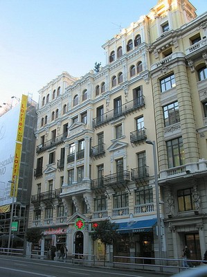 Bar Chicote - antiguo edificio de viviendas y oficinas para la Sociedad Inmobiliaria de la Villa de Madrid. Eduardo Reynals Toledo: 1913 (P), Felipe de Sala Blanco: 1913-1915 (O), Bar Chicote: Luis Gutiérrez Soto: 1931 (P), 1931 (O).