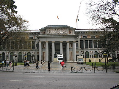En estas dos imágenes antiguas del Museo del Prado vemos la que es actualmente la Puerta de Goya, y que entonces era la