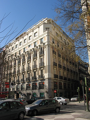 PRADO – RECOLETOS – CASTELLANA: Alberto Bosch 4: Archivo General e Histórico de Protocolos de Madrid. Paseo del Prado: Museo Nacional del Prado. Edificio Villanueva. Plaza de la Lealtad 1: Bolsa de Madrid. Pza. Cánovas del Castillo - Plaza de las Cortes 7: Hotel Palace. Plaza de la Lealtad 5- Pza. Cánovas del Castillo 2: Hotel Ritz. Alfonso XII 28 - Felipe IV 11: Museo del Prado - Casón del Buen Retiro. Méndez Núñez 1: Museo del Ejército. Recoletos 4: Edificio de la Aurora Polar, antigua casa-palacio de D. Ramón Pla Monje y actual sede del Grupo Planeta. Recoletos 13: Palacio del marqués de Alcañices y duque de Sesto, actual Consejo General de la Abogacía Española. Recoletos 17: antiguo edificio de la Sociedad de Crédito Mobiliario. Recoletos 20: Biblioteca y Museo Arqueológico Nacionales. Recoletos 21. Recoletos 23: Palacio de la duquesa de Medina de las Torres. Recoletos 31: Edificio Lepanto, antigua casa-palacio para D. Simón de las Rivas. Almirante 24. Almirante 26 . Po. de la Castellana 2 – Hermosilla 2: Hotel Gran Meliá Fénix, antiguo Hotel Fénix . Castellana 13: antiguas viviendas para el marqués de Encinares. Castellana 19: CNMV - Comisión Nacional del Mercado de Valores, antigua casa-palacio de D. Pablo del Puerto. Castellana 21 y 23: antiguas viviendas para D. Luis Mitjans. Castellana 33: Mutua Madrileña, antigua sede de La Unión y el Fénix Español. Castellana 37: Palacete de D. Eduardo Adcoch. Castellana 61: Centro Superior de Estudios de la Defensa Nacional (CESEDEN). José Gutiérrez Abascal 2: Museo de Ciencias Naturales y Escuela Técnica Superior de Ingenieros Industriales, antiguo Palacio de las Artes e Industrias. Ríos Rosas 21: Escuela Técnica Superior de Ingenieros de Minas. Ríos Rosas 23: Instituto Geológico y Minero de España.