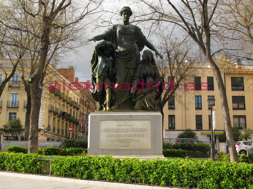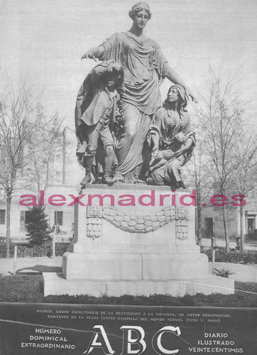 popular Rastro madrileño) existe una estatua sobre un pedestal. La inscripción en el pedestal de la estatua reza así: «Este grupo, obra del escultor alemán A. Knipp, que representa la protección a la infancia, fue donado al