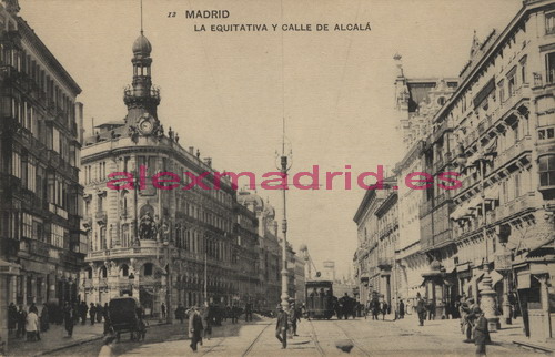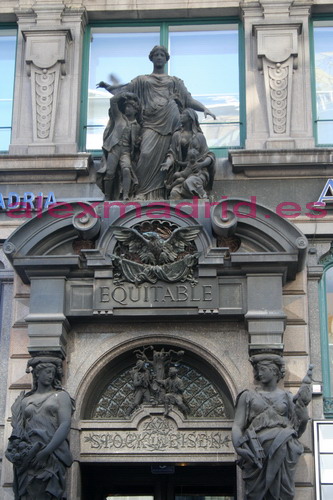 Equitativa en Madrid, edificio levantado por la compañía aseguradora del mismo nombre en la confluencia de las calles Sevilla y Alcalá. Este grupo escultórico fue encargado por la compañía de seguros a semejanza de la estatua que