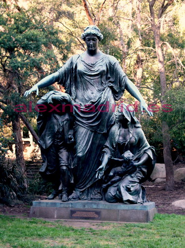El edificio de Melbourne fue inaugurado a finales de marzo de 1896 y estuvo situado en la esquina de la calle Collins y Elisabeth, con la estatua decorando el pórtico de entrada al mismo. Aunque fue demolido en 1959 por razones comerciales, la compañía que había sucedido en Australia a La Equitativa, la Colonial Mutual Life Assurance Society, donó la estatua a la Universidad de Melbourne. |