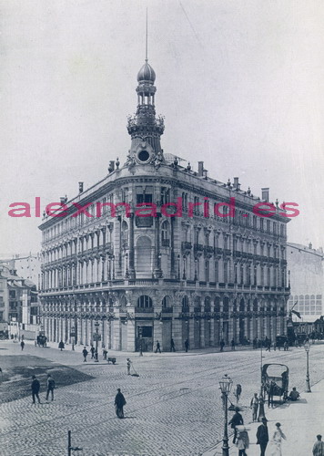 El edificio de Madrid, situado en la confluencia de las calles Alcalá Sevilla, fue construído por José Grases Riera entre 1887 y 1891, y cabe destacar los elementos decorativos del torreón realizados por Francisco Cánovas del Castillo y Javier Barroso. Por encima del reloj del torreón existía originalmente un escudo de los Estados Unidos de América, incluyendo un águila calva de metal. La tarde del 21 de abril de 1898, tras conocerse el ultimátum de los EE.UU. a España para que renunciara a su soberanía sobre Cuba, una turba encolerizada forzó la retirada del escudo y el águila, en presencia del gobernador civil de Madrid, Alberto Aguilera. Esa misma noche, para calmar a las masas, los representantes de la compañía taparon la placa del nombre de la aseguradora con un lienzo blanco con el texto: “CONSTRUIDO ESTE EDIFICIO EN GARANTÍA PERMANENTE DE LOS ASEGURADOS ESPAÑOLES, ESTÁ HIPOTECADO EN FAVOR DE LOS MISMOS”. Por tanto, la presencia o no del escudo y del lienzo nos pueden ayudar a datar las fotografías que existen del edificio. |